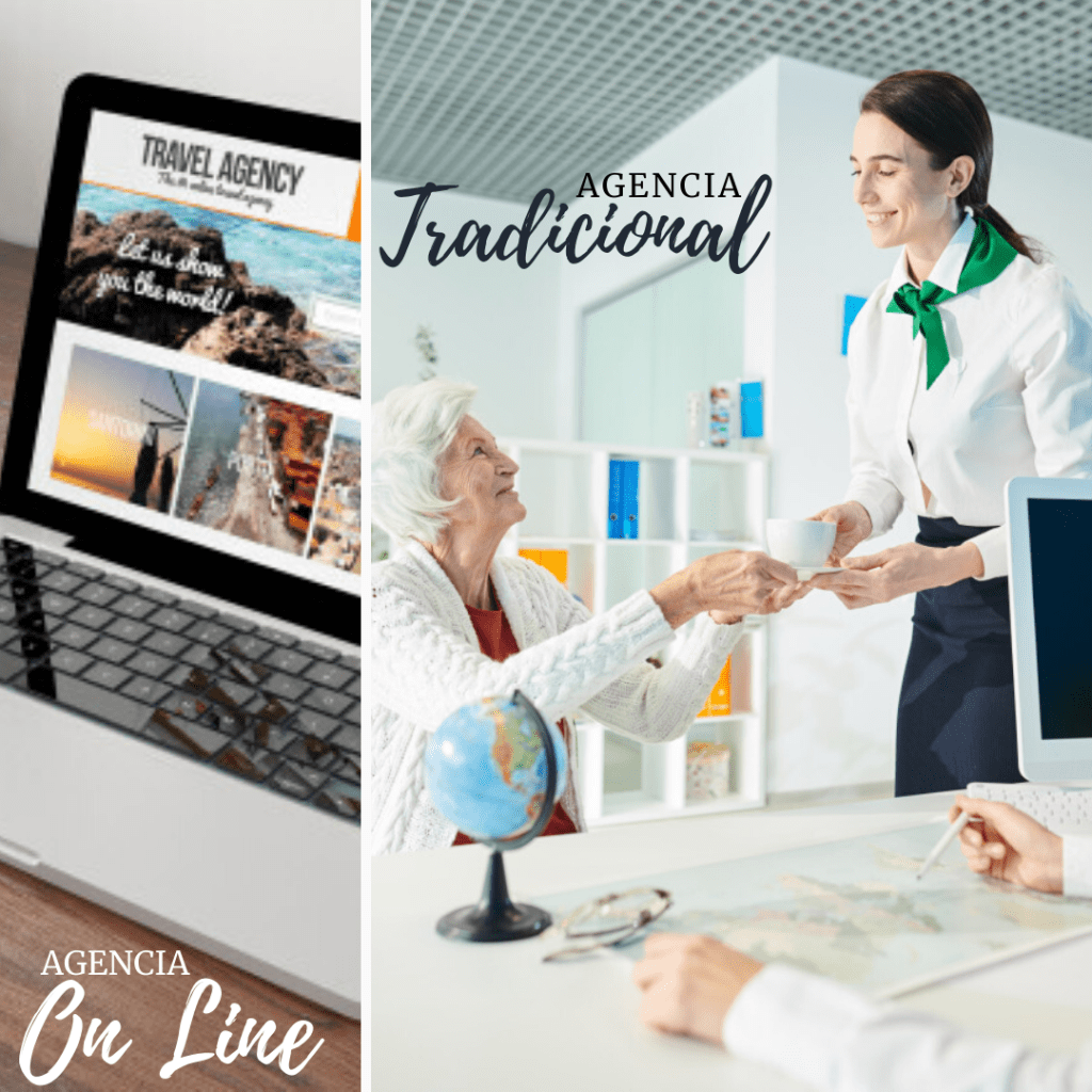 Con los avances tecnológicos del internet los modelos de las agencias minoristas y mayoristas se han visto obligados a tener presencia on line no solo para simplificar procesos sino también para tener un mayor alcance. Estas agencias tienen estructura fisica donde desarrollan sus actividades y luego programan sus servicios on line. Dependiendo como esten programadas los paquetes y/o servicios estos pueden estar automatizados para sus procesos de venta sin ocurrir una interaccion entre turista/cliente y el asesor.