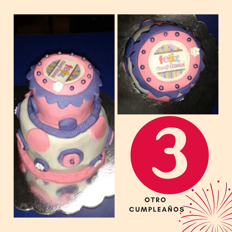 Esta torta fue para otra compañera de trabajo en su cumpleaños, hoy en día no recuerdo para quien exactamente, antes de esta ya había practicado haciendo algunos cupcakes decorados para halloween y un baby boy. Empece a utilizar más el papel del arroz con impresiones que podía mandar a hacer facilmente. Pensar en decorar una torta para mi es empezar a imaginar y soñar, como siempre han sido regalo para personas de mi entorno es sencillo elegir colores y motivos o formas para decorar.
